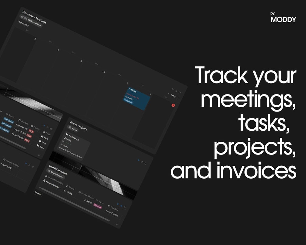 MODDY Client OS is a lightweight Notion system designed for creators, freelancers, consultants, and coaches who want clarity — not clutter.